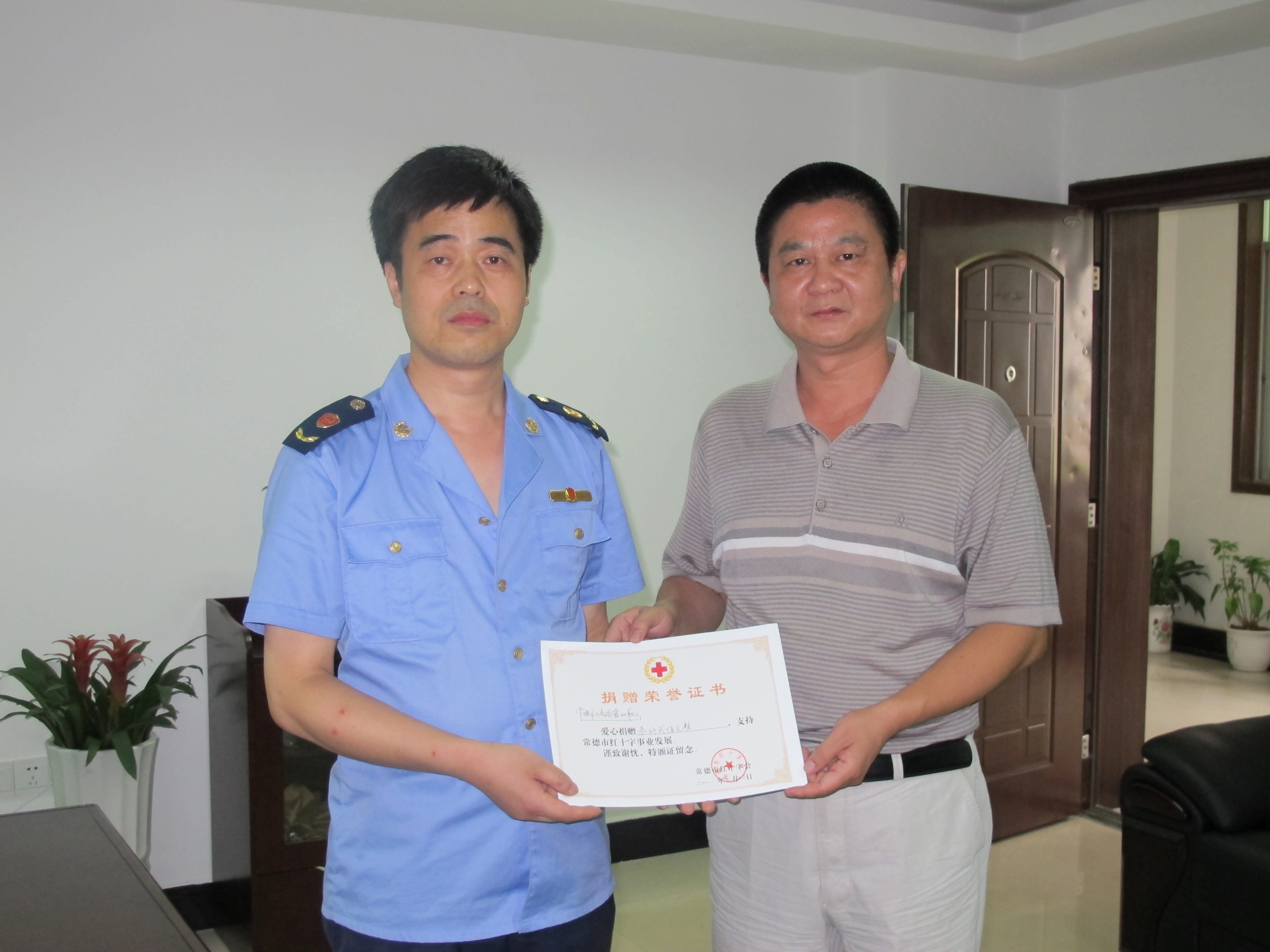 市红十字会领导接受工商局爱心捐款