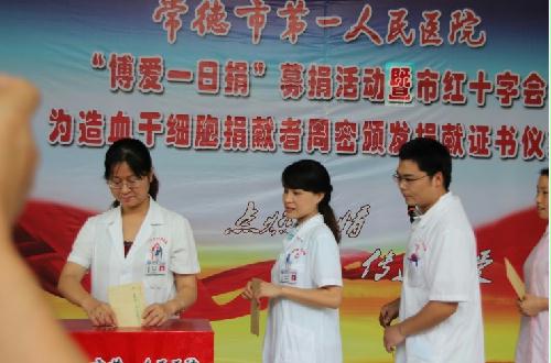 常德市第一人民医院开展博爱满人间现场募捐及bt365官网是多少为周密同志颁发捐献证书仪式1